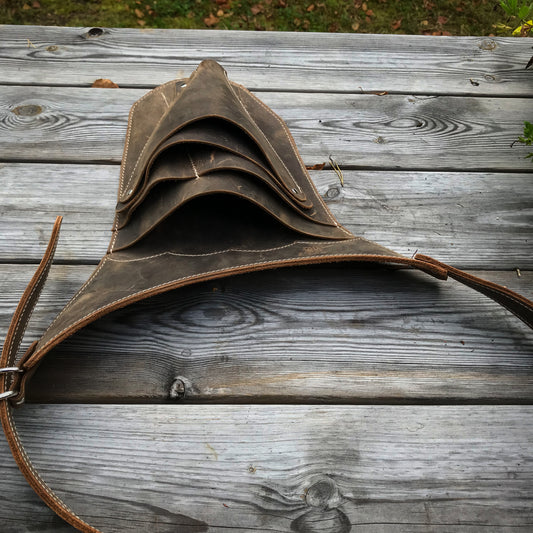 Unsere Werkzeuggürtel bestehen aus robustem, gewachstem Leder in ausgewählter Stärke. Das macht sie stabil, wasserabweisend und alltagstauglich leicht.