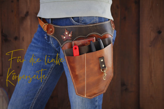 Garten-Werkzeuggürtel aus Leder – limitierte Herbstedition mit Blätterdruck | handgefärbt & individuell