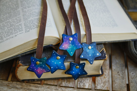Leather bookmark, ribbon bookmark with star