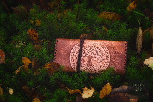 Handmade leather tobacco pouch with Yggdrasil – the world tree of Norse mythology