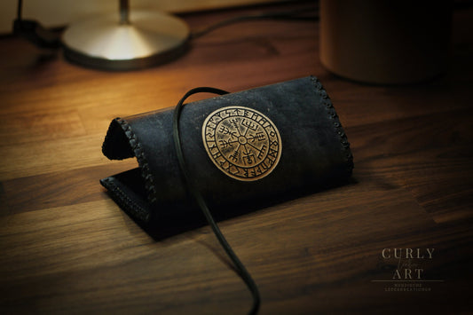 Tobacco pouch made of vegetable-tanned leather with Vegvisir compass
