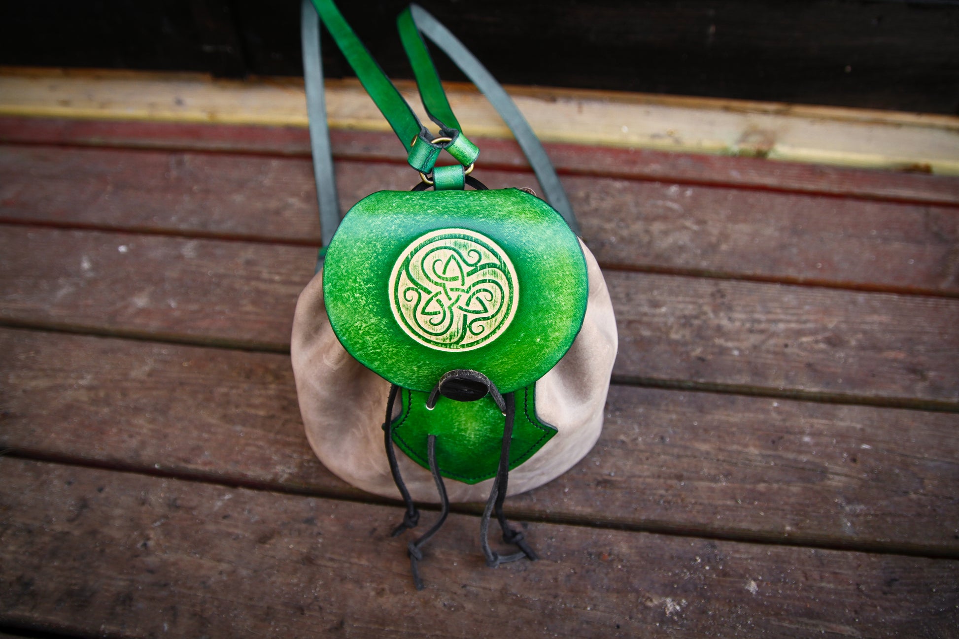 Small backpack, made of leather, Vegvisir, Celtic backpack