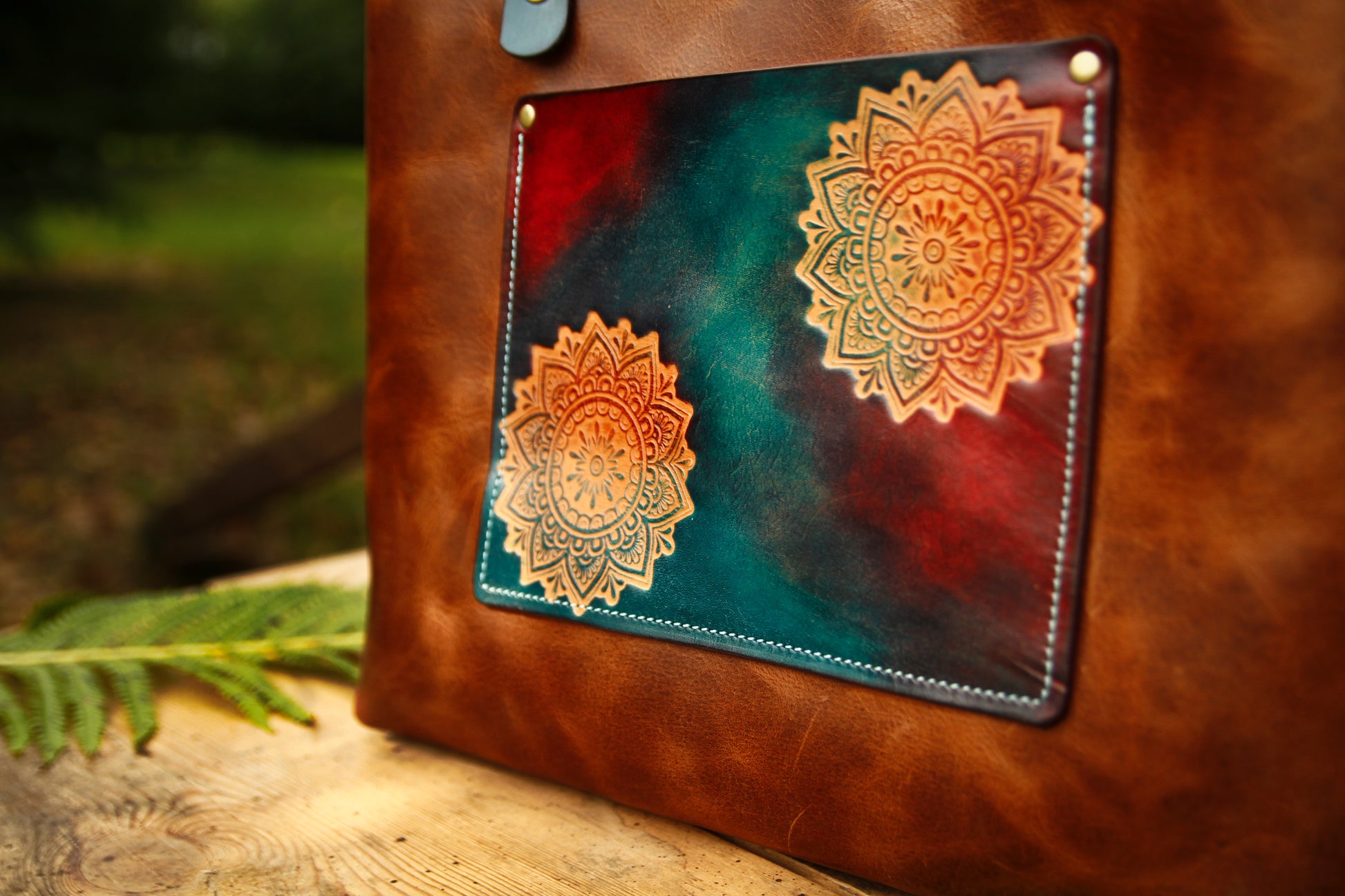 Mandala • Lädershopper • med innerficka • Shopperväska